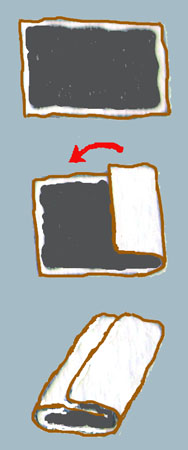 - Den Teig auf einer leicht bemehlten Oberfläche zu einem Rechteck ausrollen.